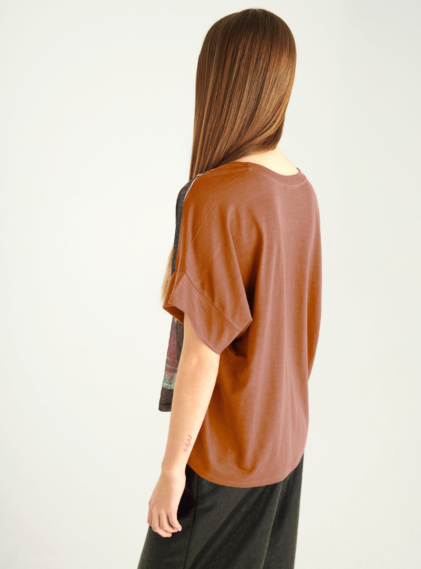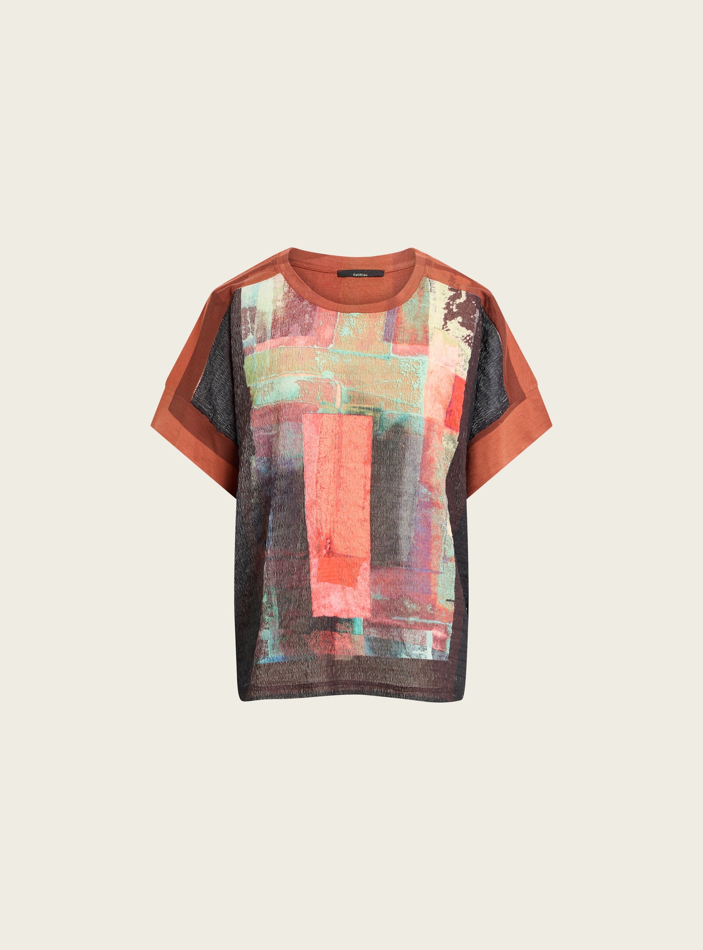 This high-volume T-shirt impresses with its graphic look and elaborate textile construction.